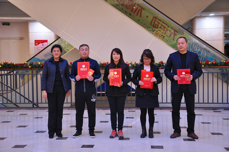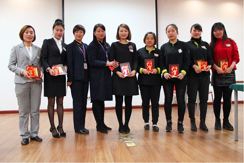 2018年2月8日 沈陽商業(yè)城總部、沈陽商業(yè)城門店、鐵西百貨門店、金廊店、鐵西奧萊店、錦州店及名品折扣店聯(lián)手舉辦了2018年員工聯(lián)歡會暨表彰大會。會上董事長陳哲元先生致新春賀詞,向全體干部員工表達了深切的祝福和誠摯的感謝;沈陽商業(yè)城門店總經(jīng)理鐘靜女士特出資設立特別獎項表彰先進,并在頒獎后表達對全體員工2017年的努力和辛勞的感謝,代表公司向全體員工及家屬拜年,祝福新春快樂、萬事如意!闔家幸福!